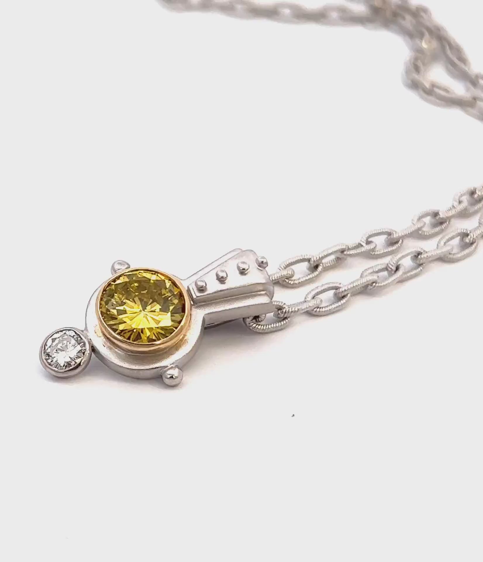 Stone: Approx 1.84 TCW (0.22 & 1.62 ct) Irradiated Yellow SI & White I I1 Diamonds