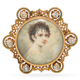 Victorian Handpainted Miniature Portrait With Yellow Gold and Diamond Frame