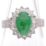 Vintage 14K White Gold Green Jade Cabochon & 0.24TCW Diamond Band Ring Size 6.25