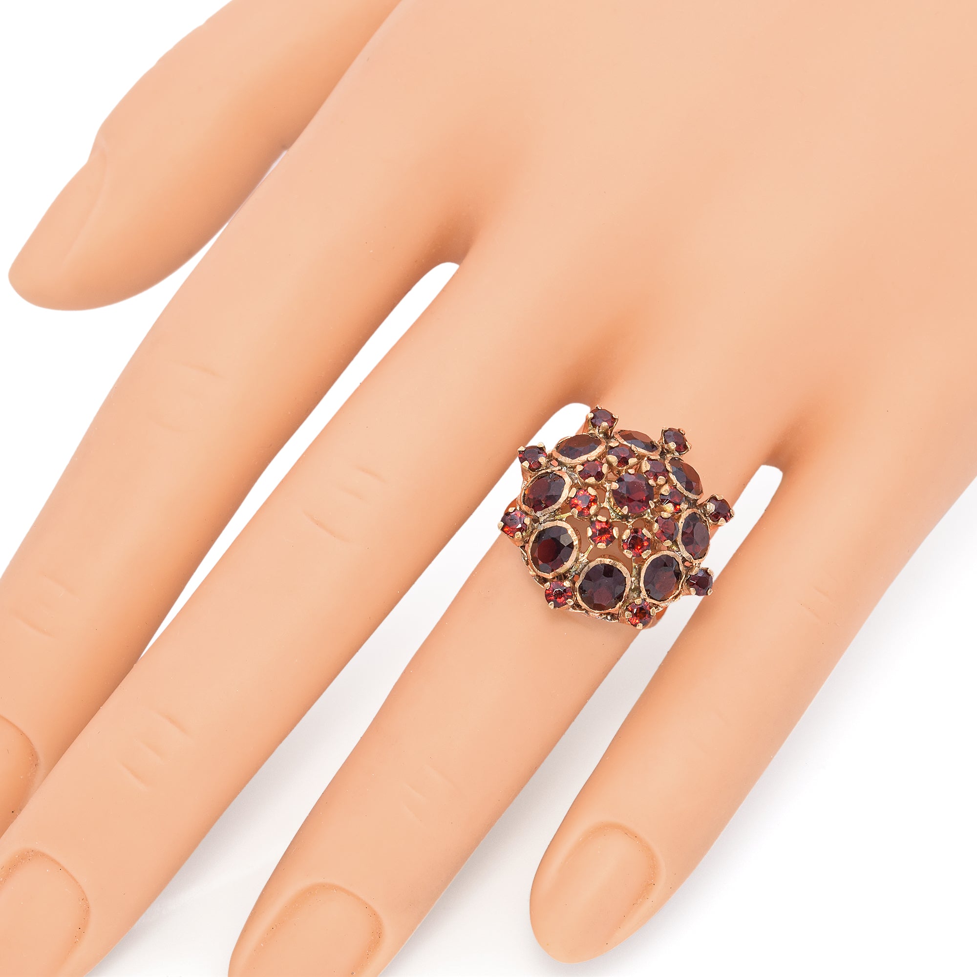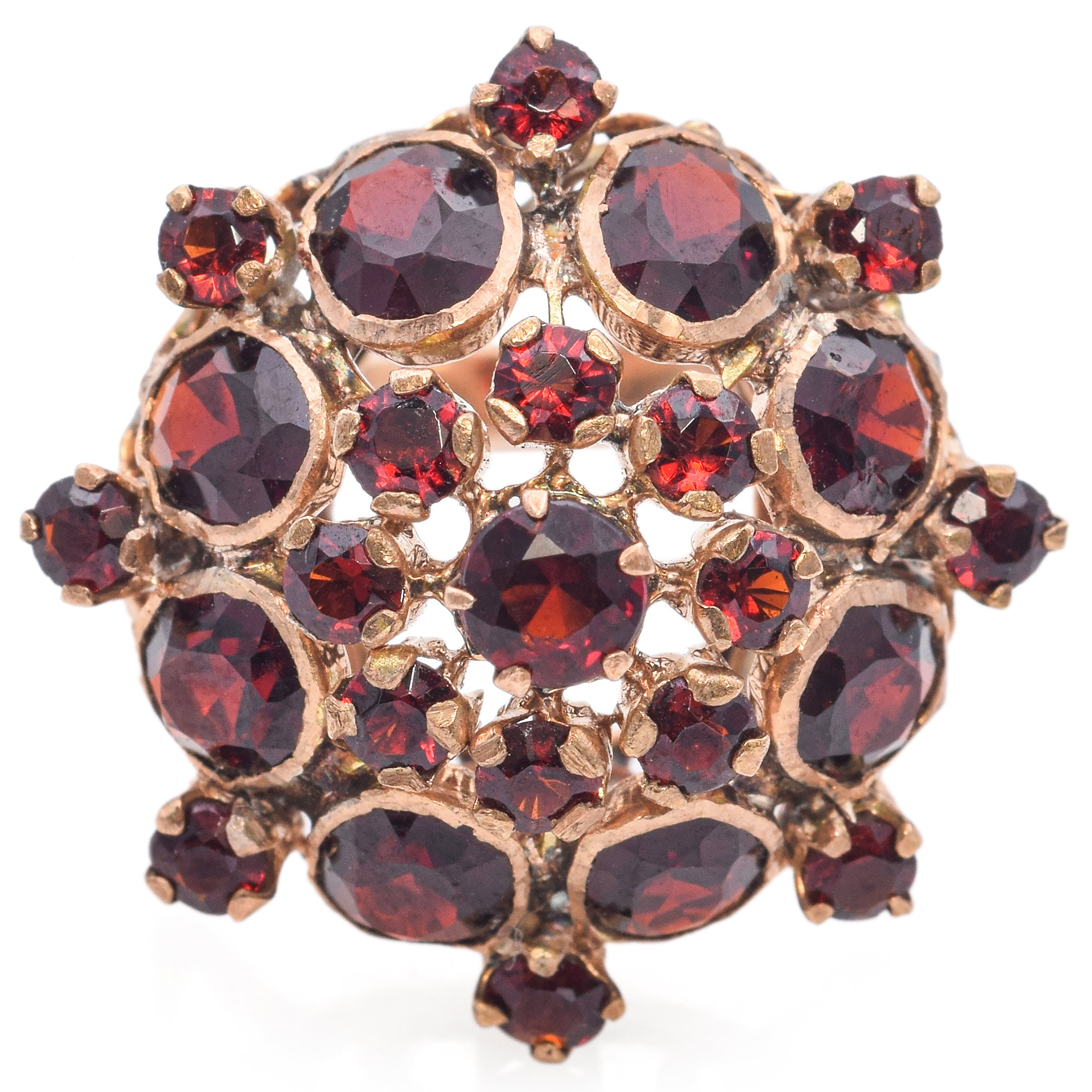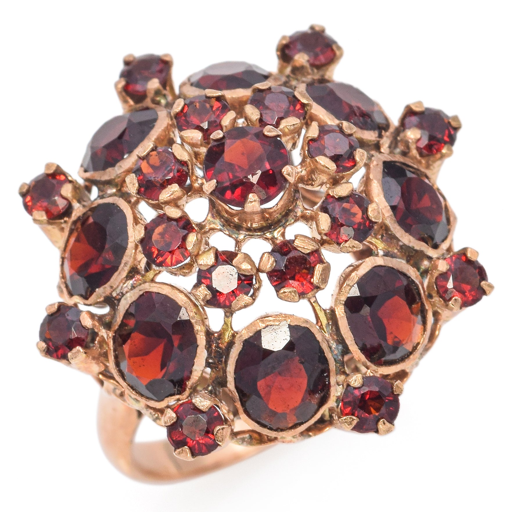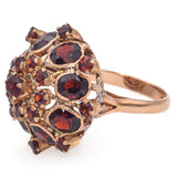 Vintage 14k Yellow Gold Garnet Cluster Cocktail Ring
