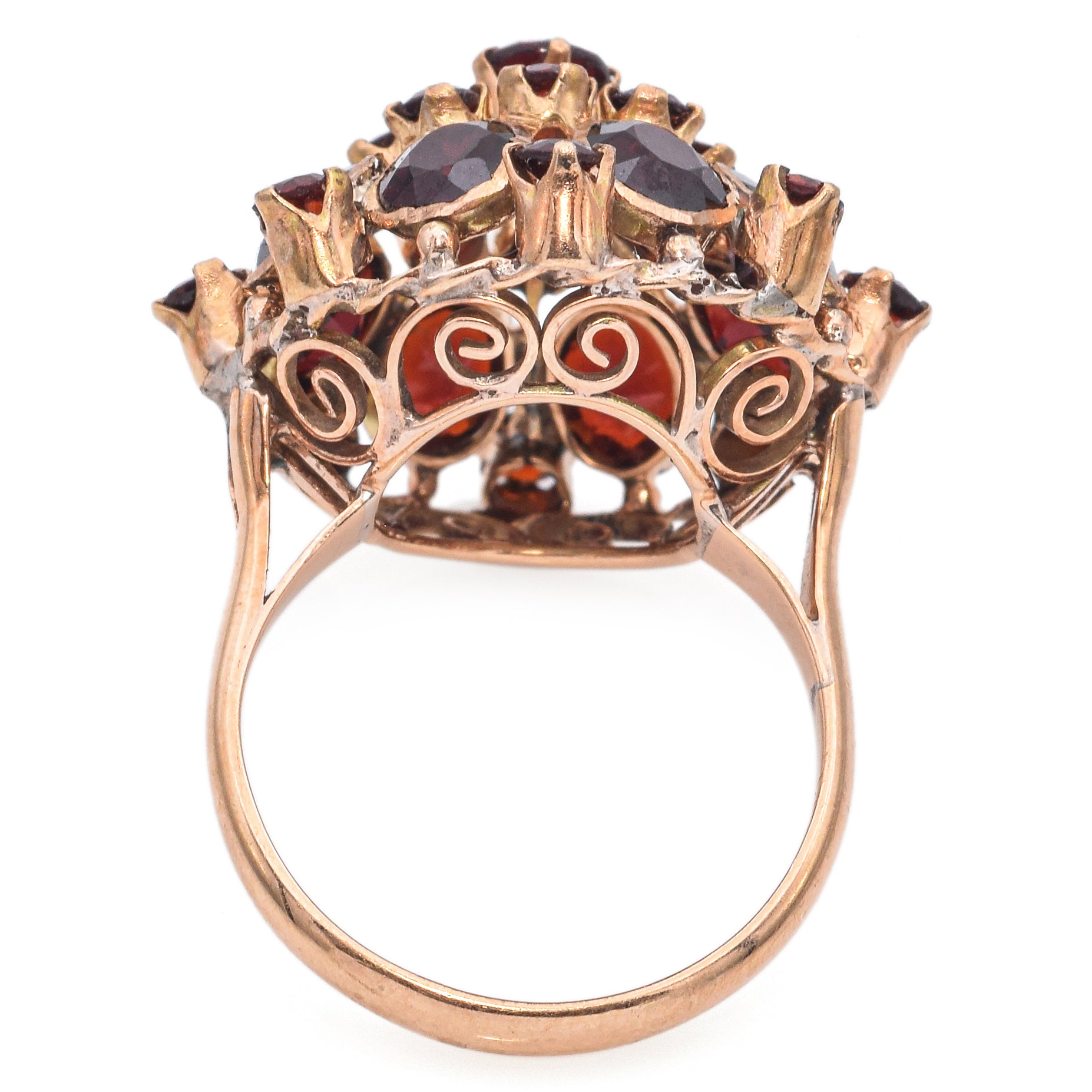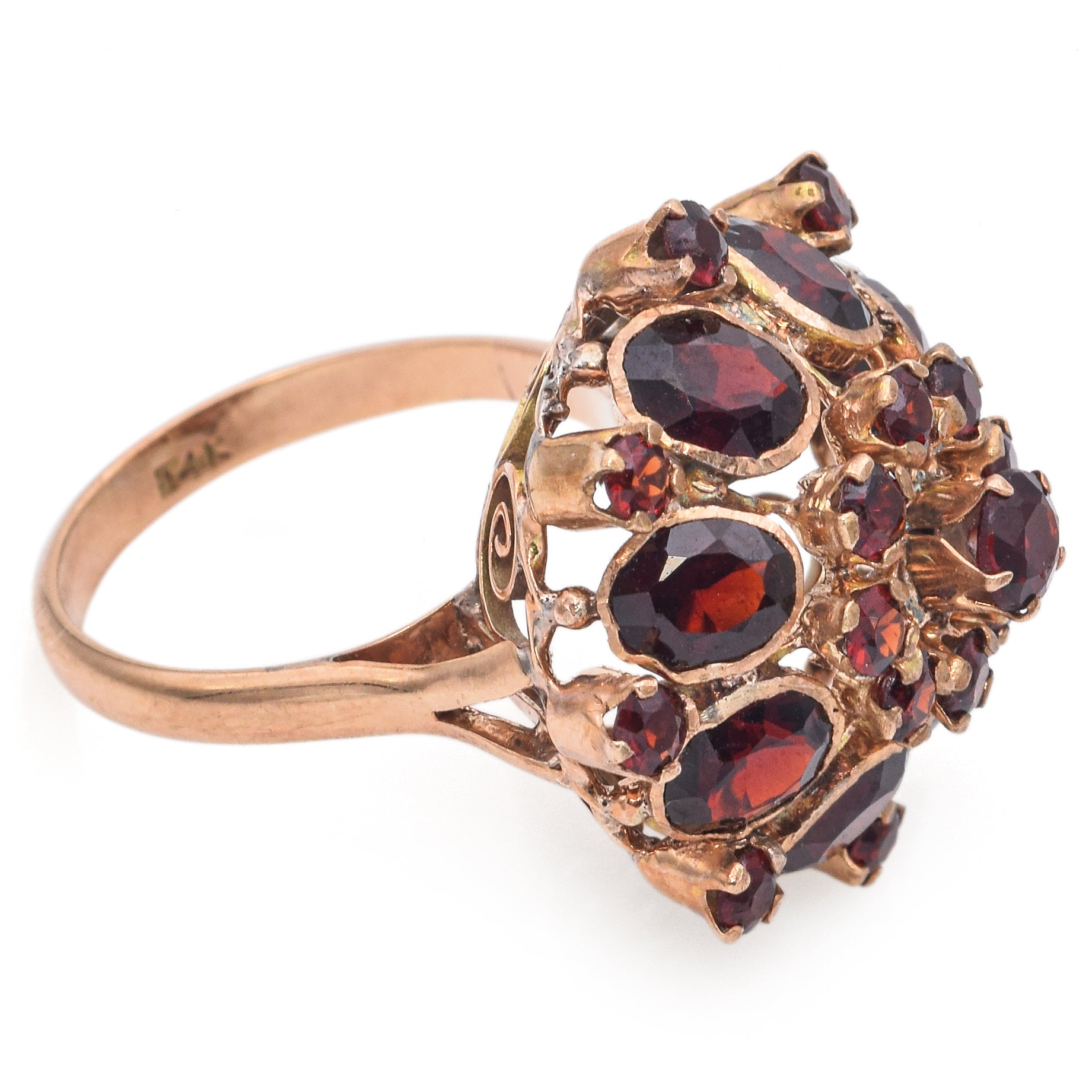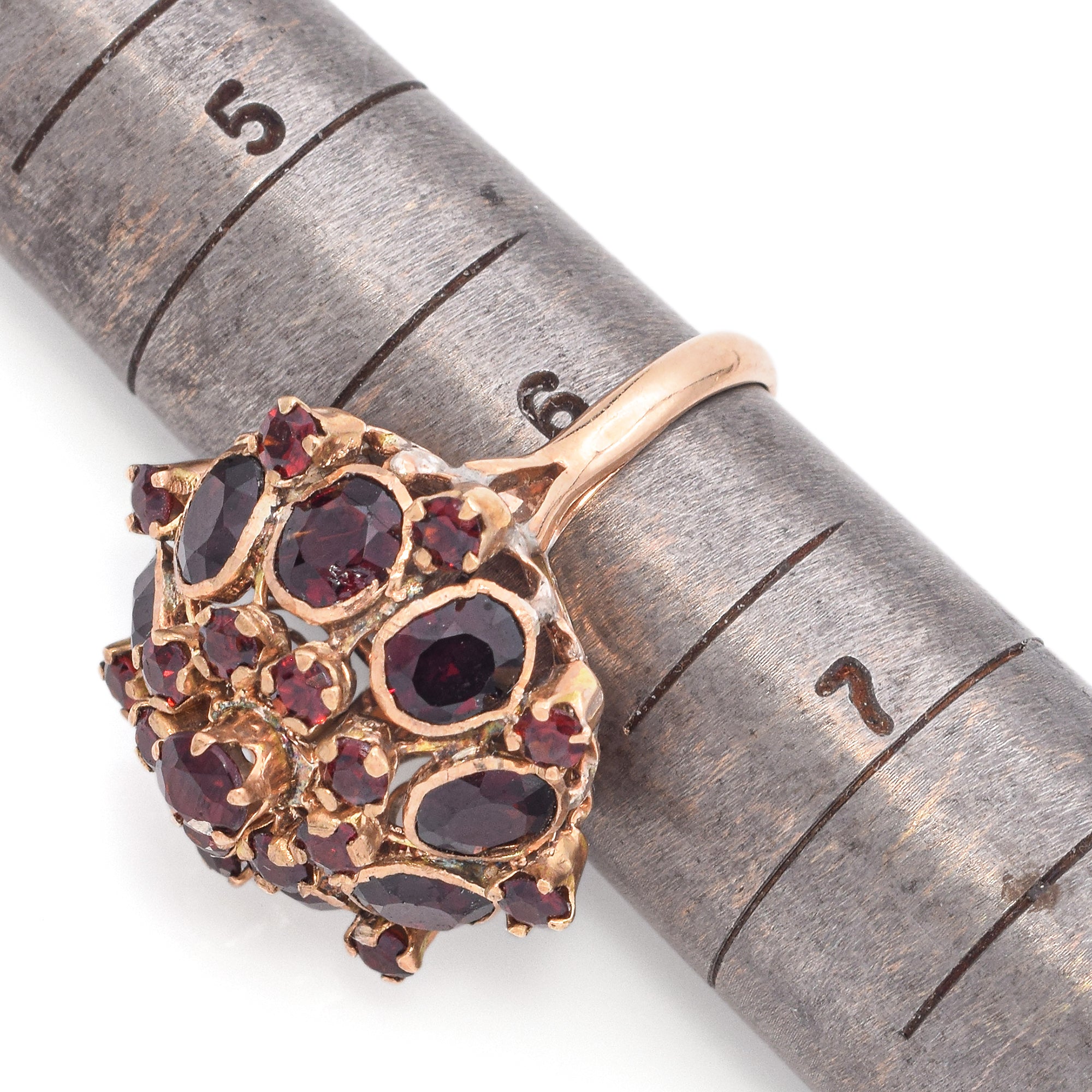 Vintage 14k Yellow Gold Garnet Cluster Cocktail Ring
