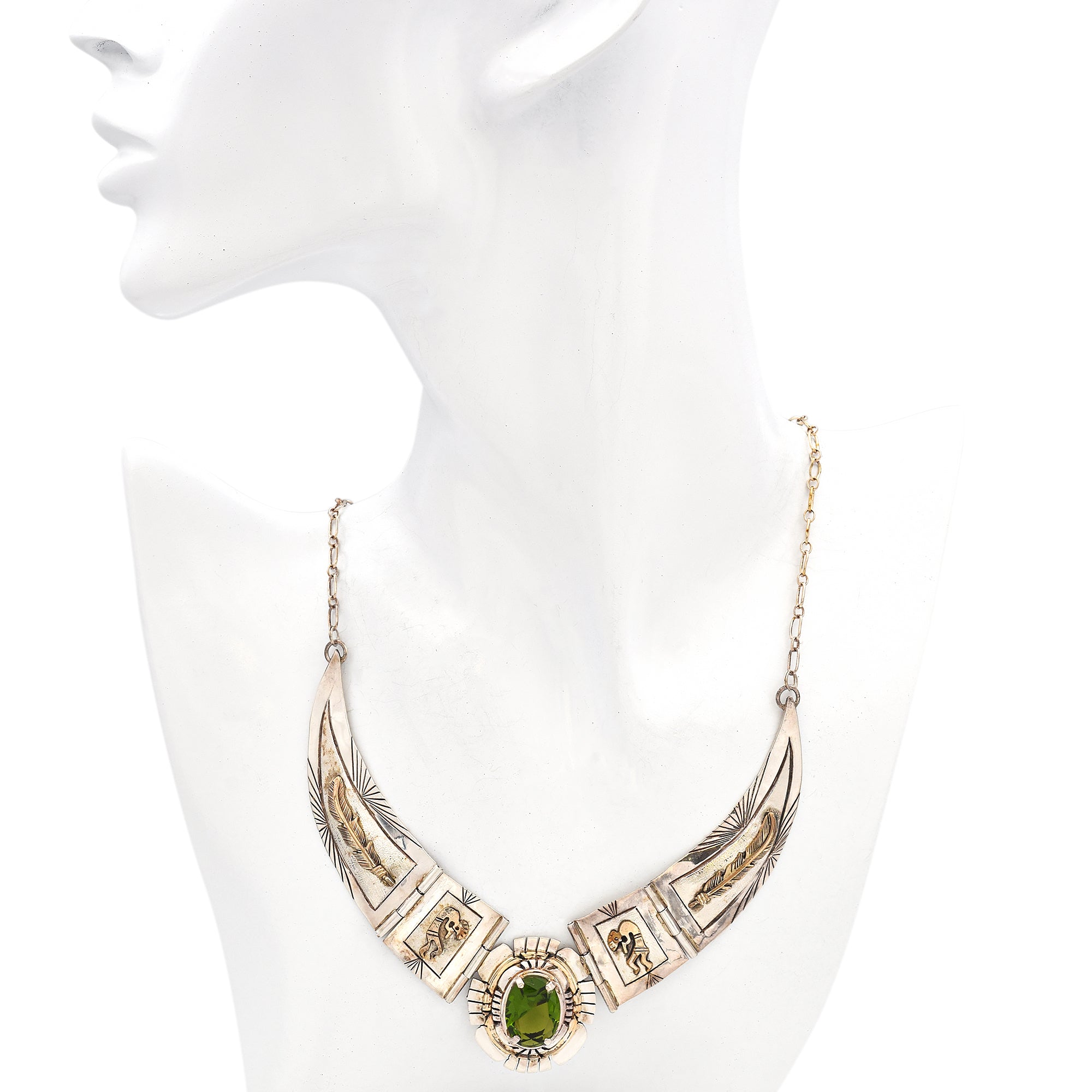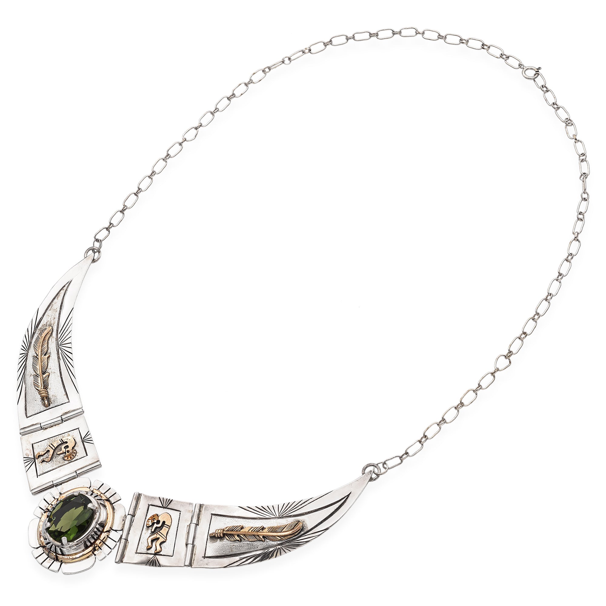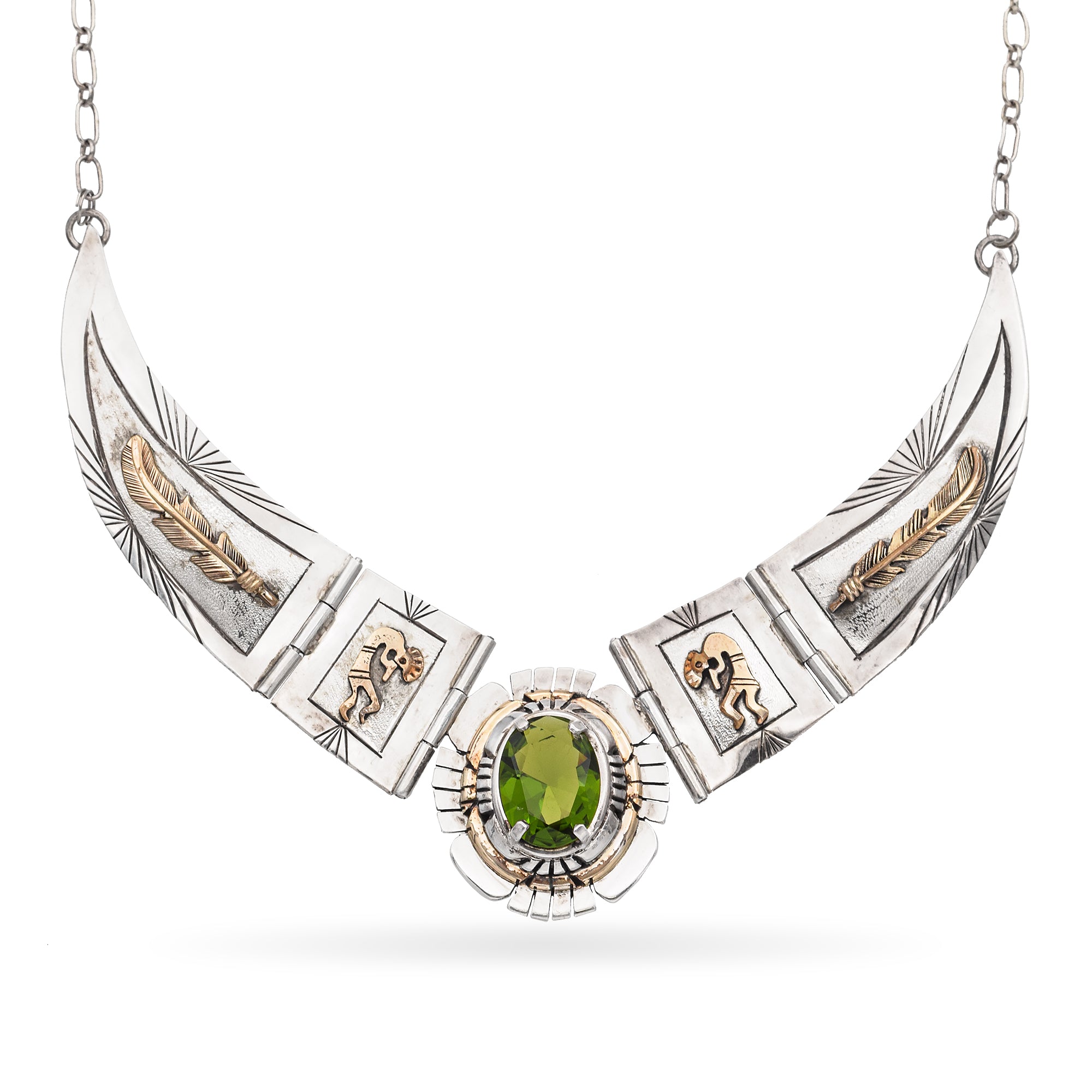 Vintage Russell Sam Navajo Kokopelli Peridot Sterling Silver Statement Necklace