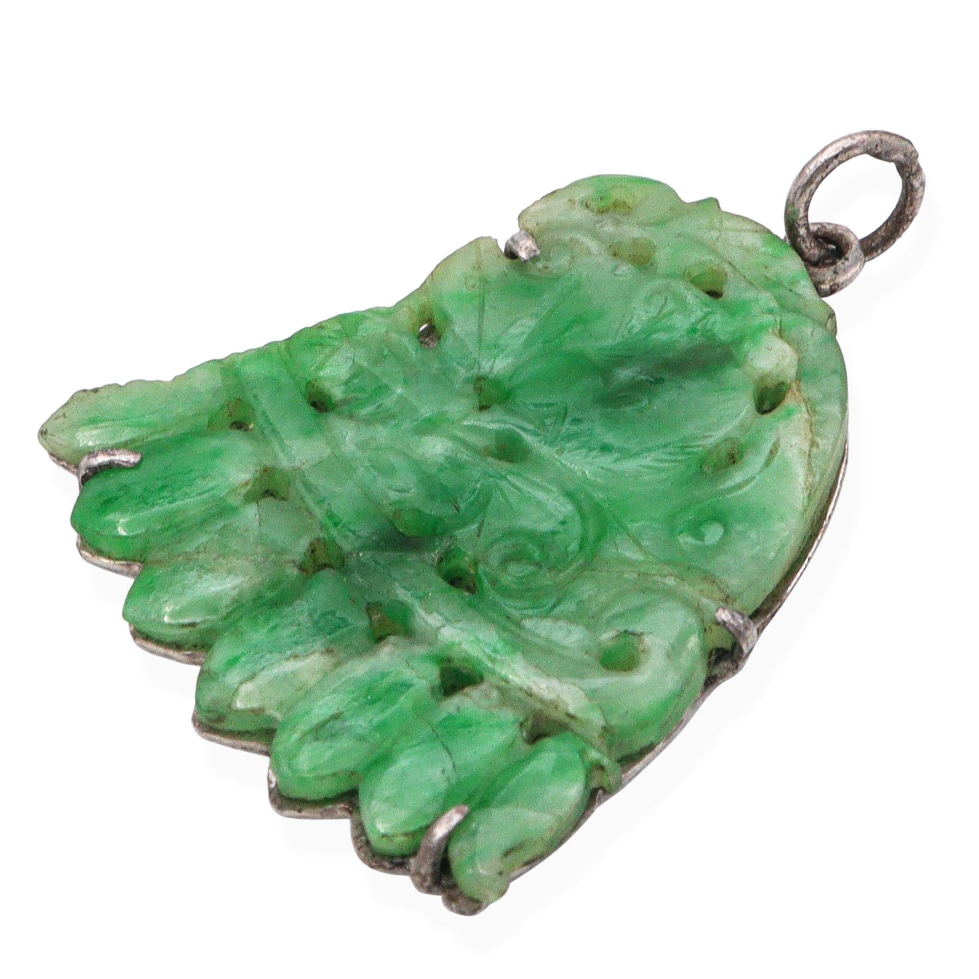 Vintage Silver Carved Jade Mugal Style Motif Pendant