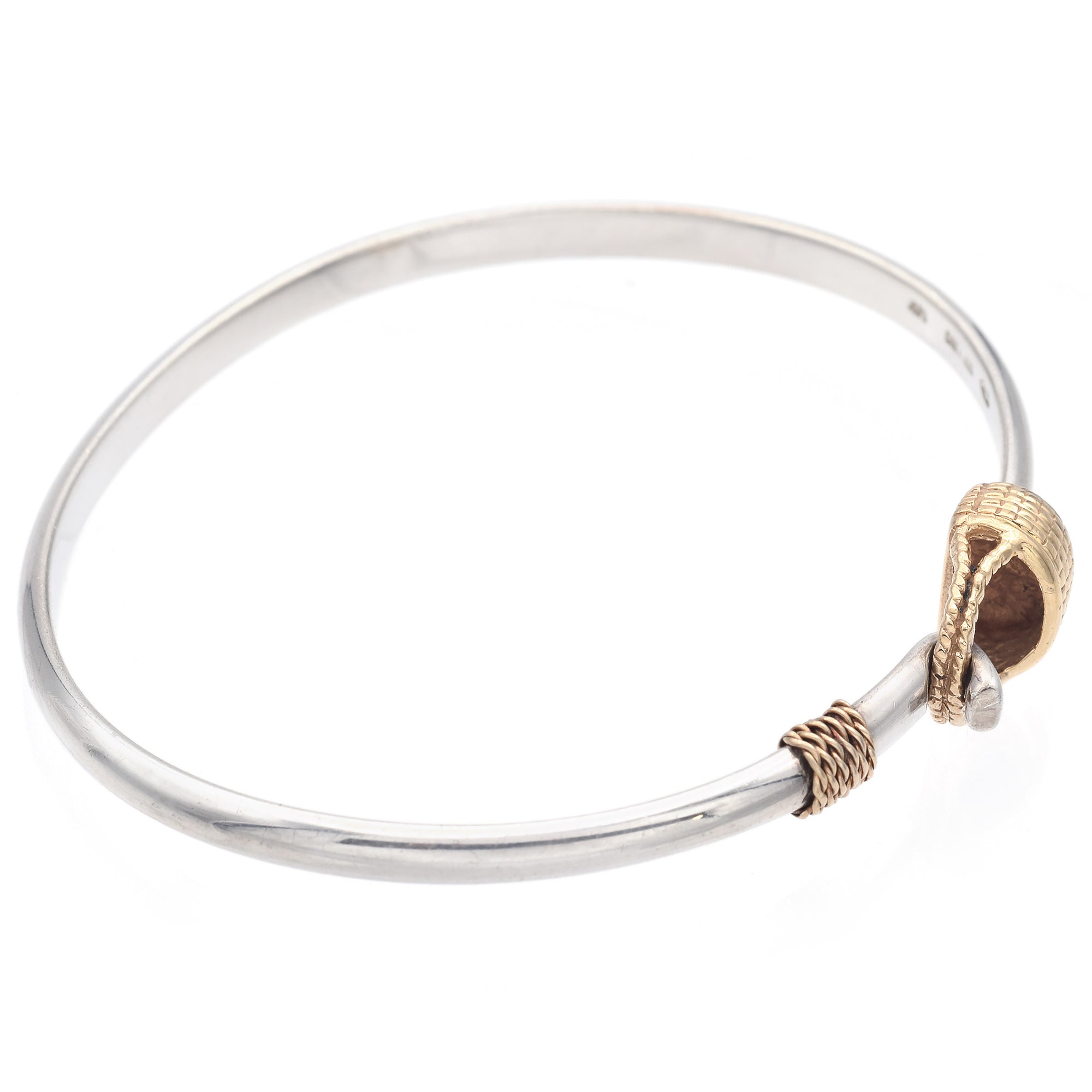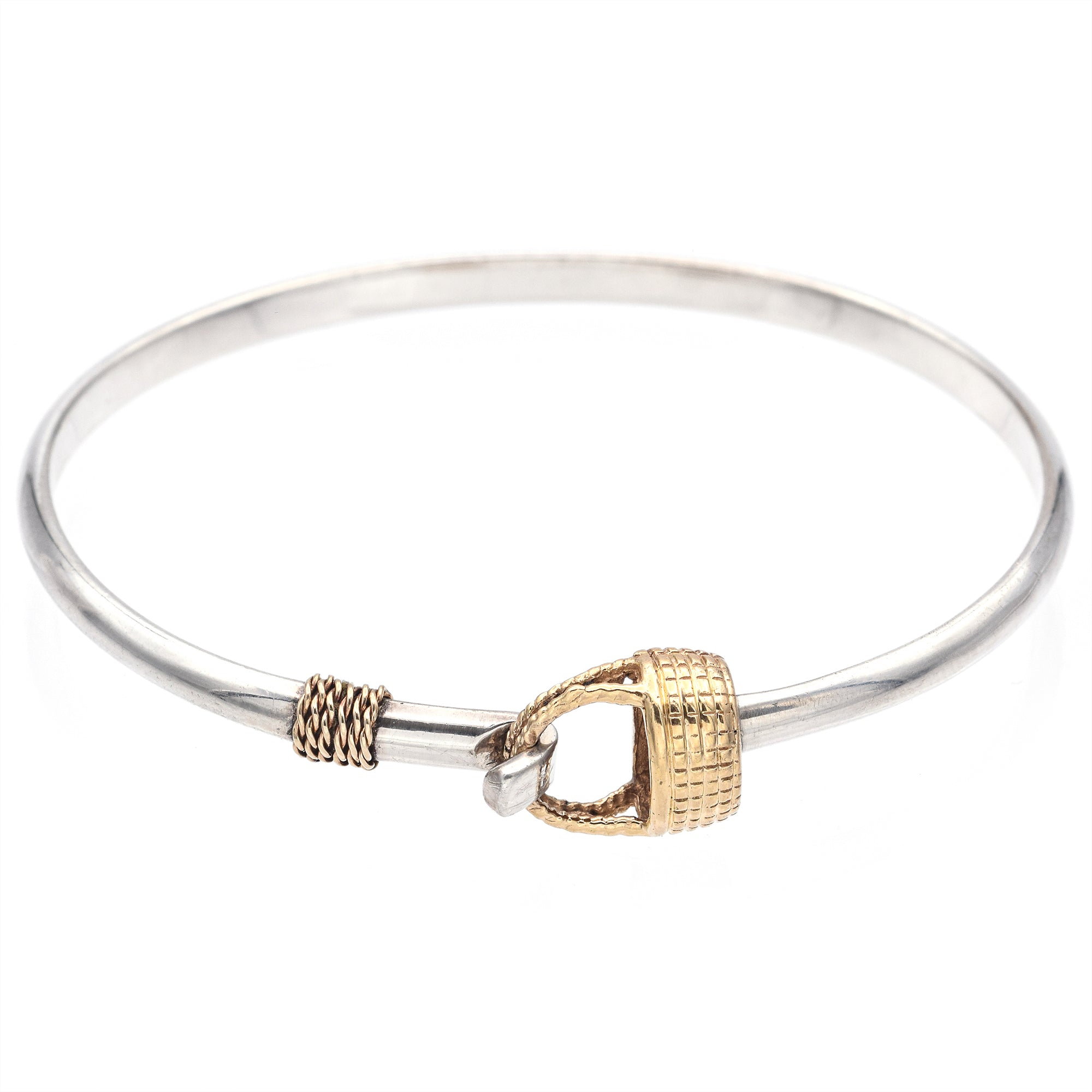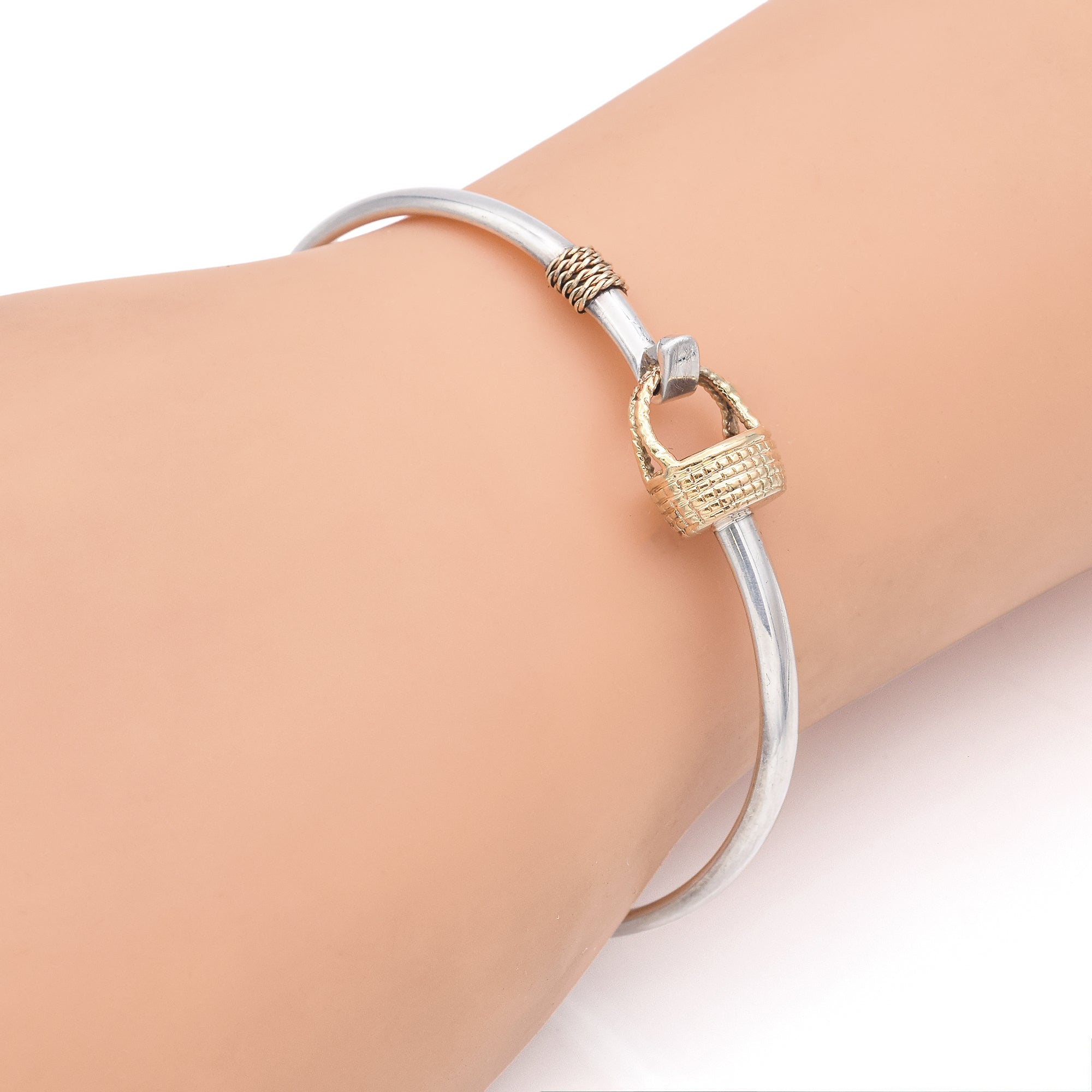 Vintage Sterling Silver & 14K Yellow Gold Open Woven Nantucket Bangle Bracelet